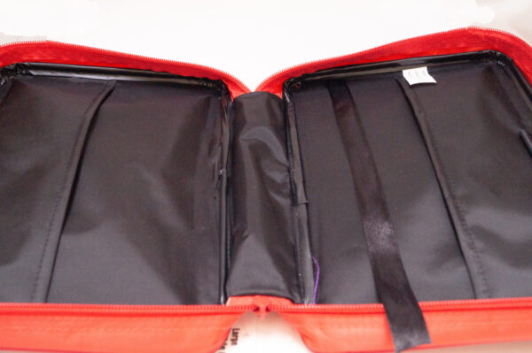 The Bible cover for women is made of good quality waterproof fabric. Includes a sturdy zipper, an inner pocket and a sewn bookmark. Color: red and white