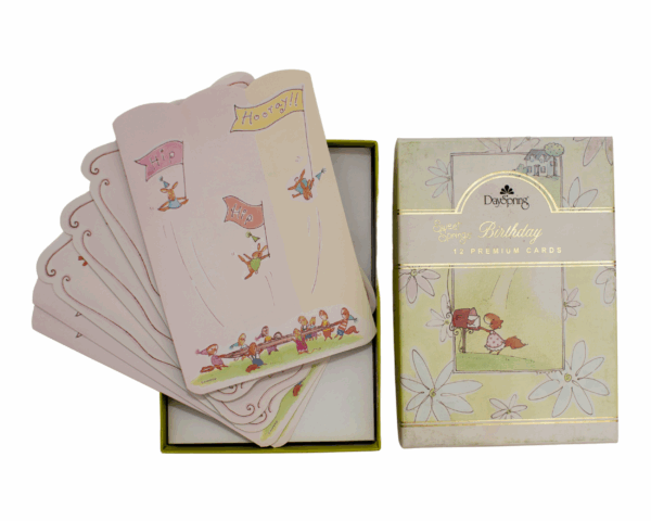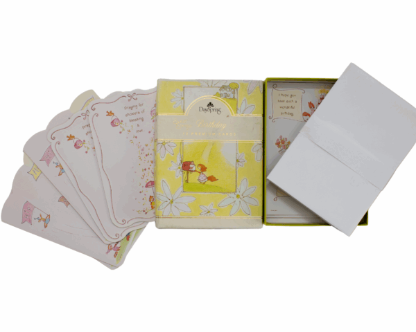 The set contains 12 greeting cards and 12 envelopes. They have a unique and beautiful design. A great gift idea to a kid on their birthday celebration.